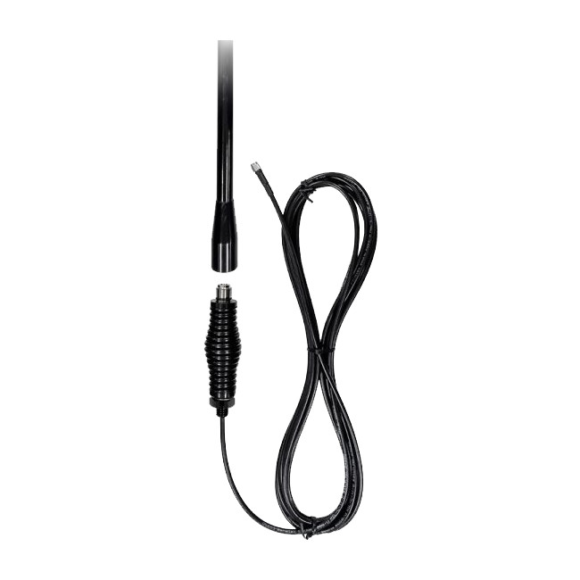 Sealed removable Spring interface, Heavy Duty construction, Covering the full 5G band, 690-960MHz 1710-2700MHz and 3.5-3.7GHz. Terminated to 5m x Low Loss Cable and SMA plug fitted. Overall length 1220mm.