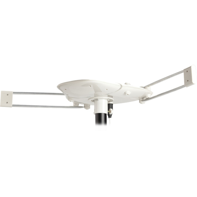 It includes a signal amplifier (240VAC adaptor supplied) AND a rotator motor built into the antenna housing AND a remote control for that. It also comes with approx. 8 metresof TV lead with a weatherproof plug on one end. • Includes booster amp which will drive two televisions • Compatible with our telescopic mast systems (sold separately) • Supplied with other hardware • Output 80 dbuV. Antenna measures: 750(W) (deployed) x 300(L) x 100(D)mm (Folds down for storage) Note: Not suitable for salt water environments