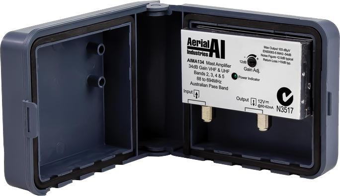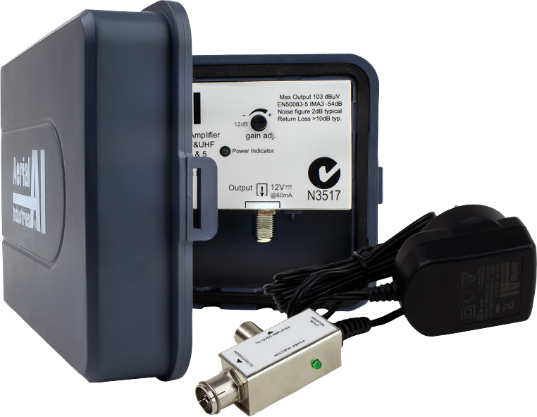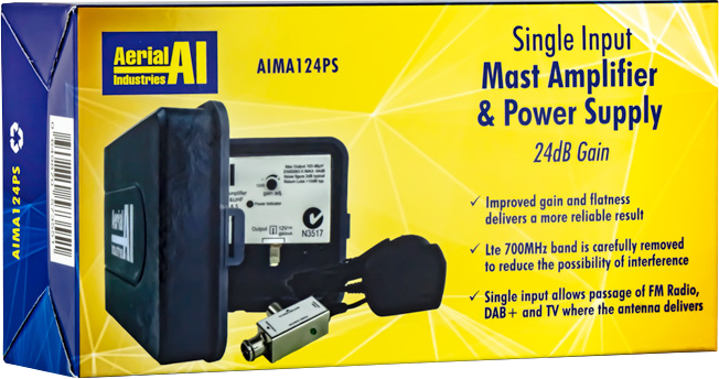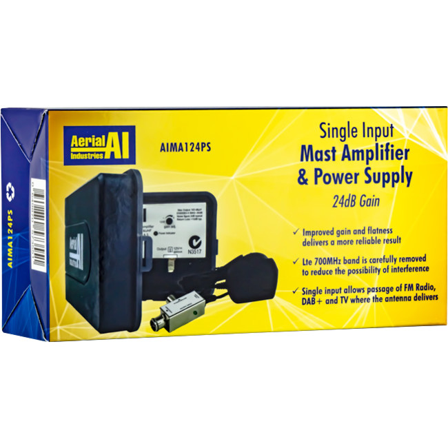 24dB Gain VHF UHF Single Input Masthead Amplifier with 12VDC PAL Power Supply