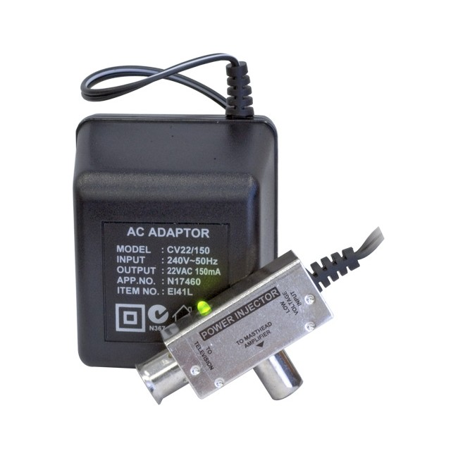 Suitable for powering Masthead TV amplifiers via the coaxial cable. POSITOR PROTECTED.75 PAL injector with 1.8 metre lead