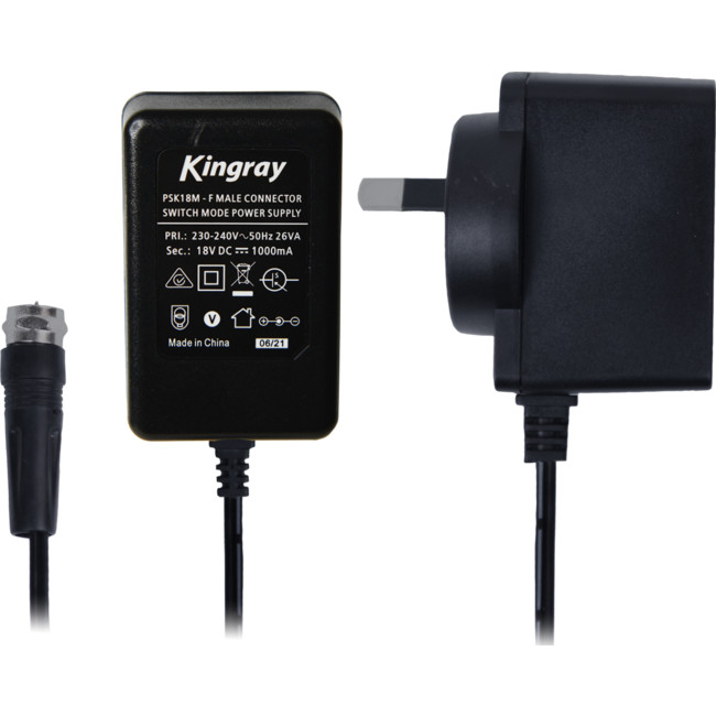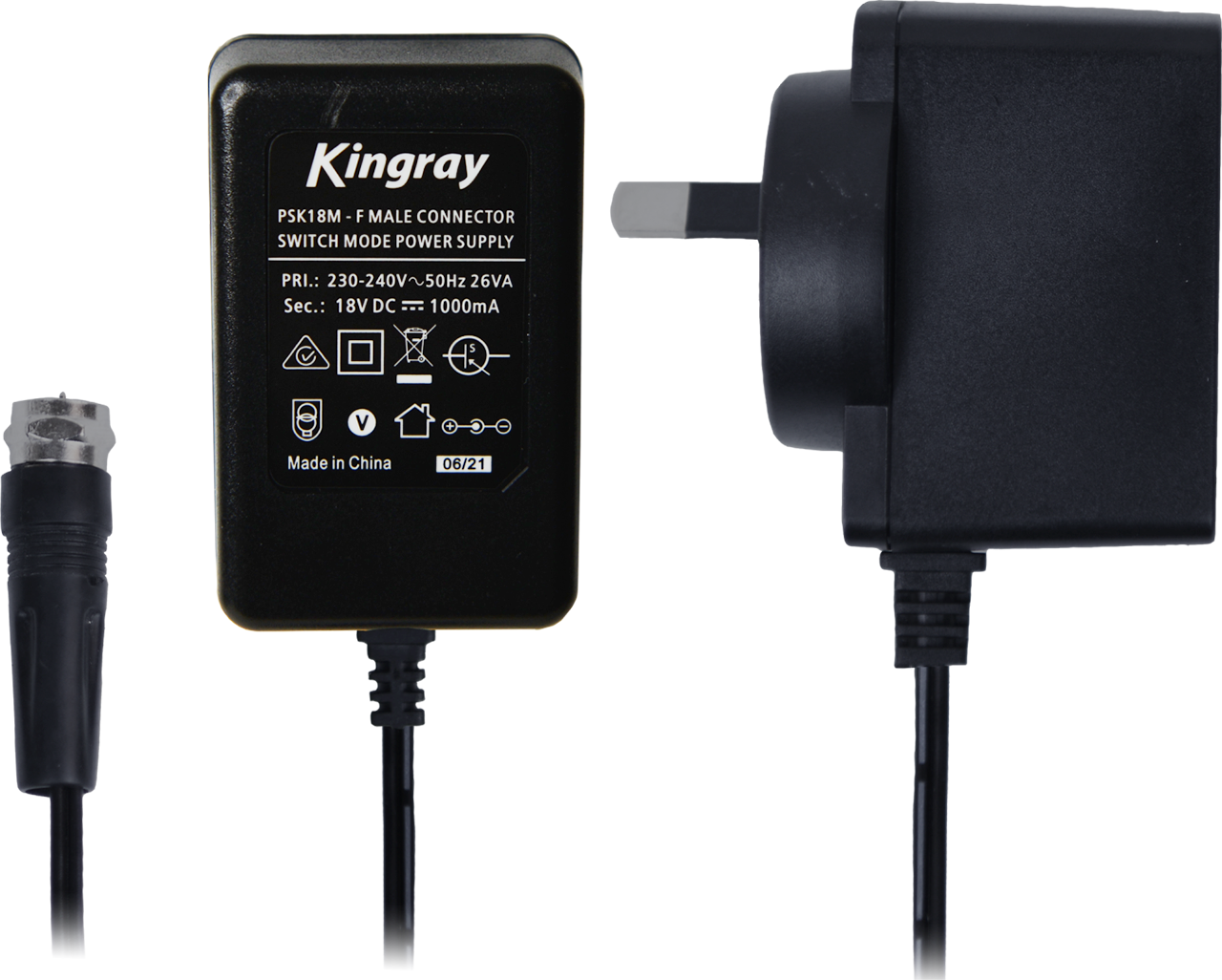 This is the perfect product for powering up the new Foxtel Approved Kingray Active Taps & Super Broadband Amplifier. Kingray's power supplies have constantly maintained their reputation as the highest quality and most reliable power supplies to the antenna industry. They feature short circuit protection and fully comply with Australian and New Zealand Energy Standards. The PSK18M is slim line & compact in design, so with a small footprint it only takes up the space of 1 power point socket.