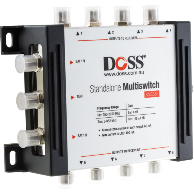 Doss SMS38F multiswitch can be used with a dual LNB to distribute satellite TV signals to multiple receivers from asingle dish and LNB. It features 3 input which means it allows you to combine a dual LNB plus an input from a terrestrial antenna.
