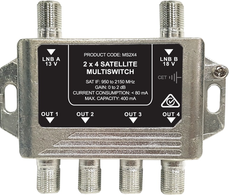 Inputs 2 Outputs / Subscribers 4 Through Loss: SAT-IF: 950 ... 2150 MHz 0 ... 2 dB Isolation: Input = 25 dB [Typ. 26 dB] Isolation: Switching = 25 dB [Typ. 26 dB] Current Consumption < 80 mA Capacity (IF Ports) Max 400 mA Ambient Temperature - 20 ... 50 C Dimensions (W x D x H mm) 89 x 72 x 16 mm