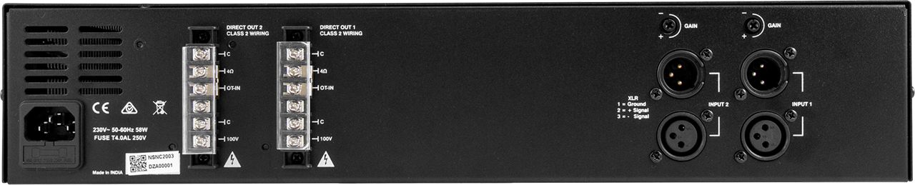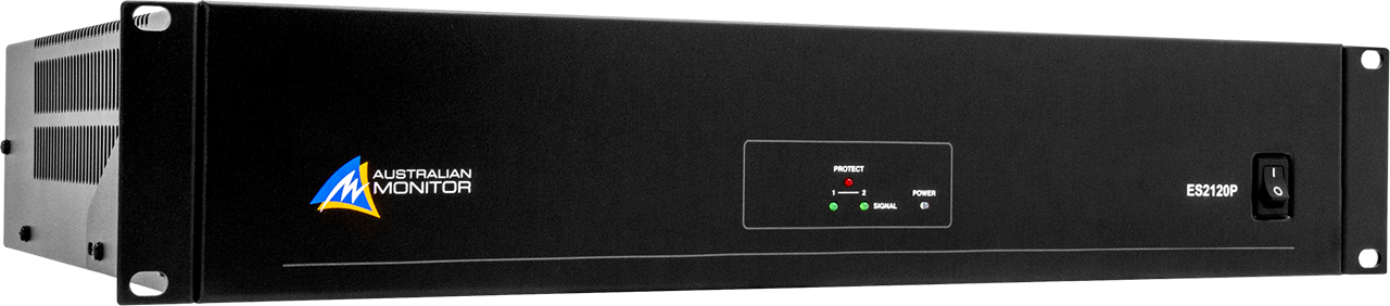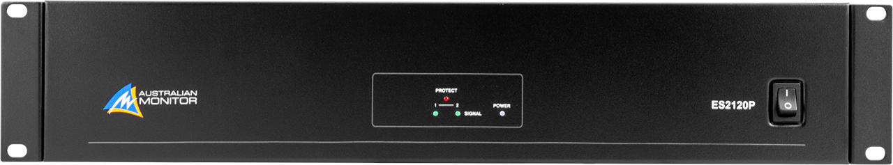 The ES2120P power amplifier delivers 120 watts per channel at 100 volt or 4 ohm in a 2 RU package.