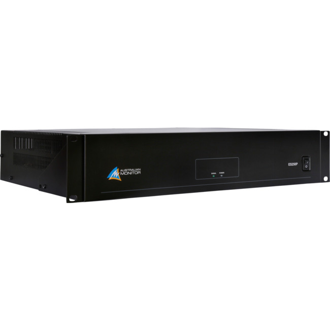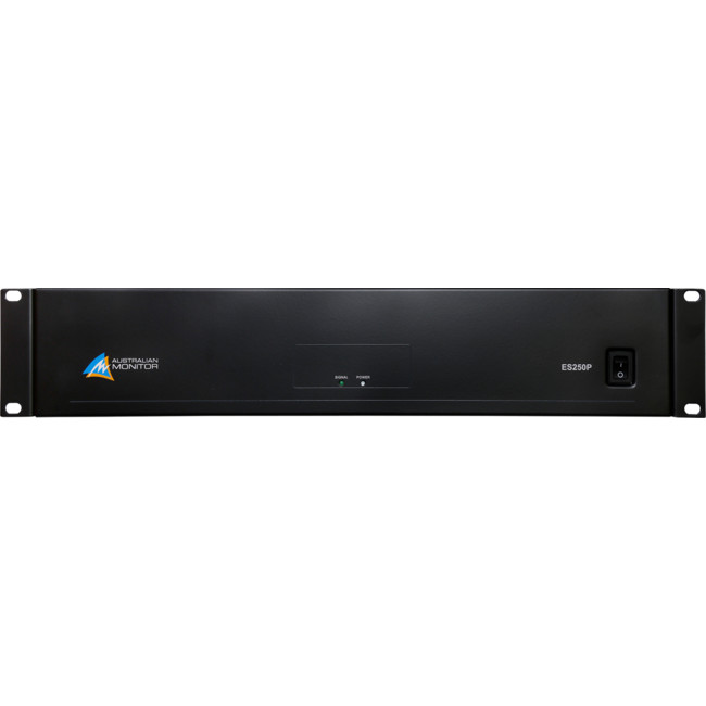 The ES250P power amplifier delivers 250 watts at 100 voltor 4 ohm in a 2 RU package.