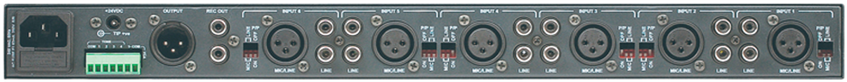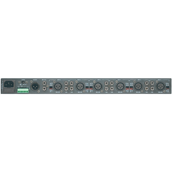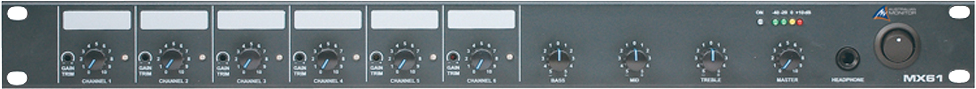 The MX61 is a 1RU mono mixer that features six universal microphone/line inputs to one mono output.