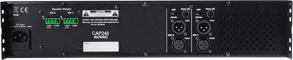 The CAP Series are professional 100V multi-channel power amplifiers, containing various models with different channels and different output power configuration.