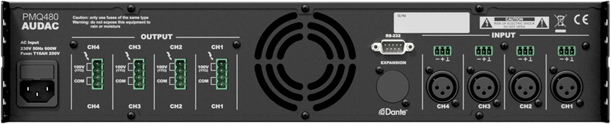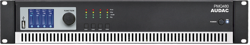 Audac PMQ480 WAVEDYNAMICS™ QUAD-CHANNEL 100V POWERAMPLIFIER