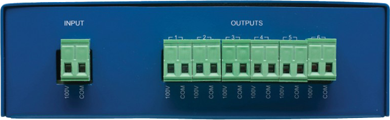 Simply wire the Zoned out to the constant voltage output of your AMC or AMIS amp and you have the ability to switch up to 6 speaker zones on or off.