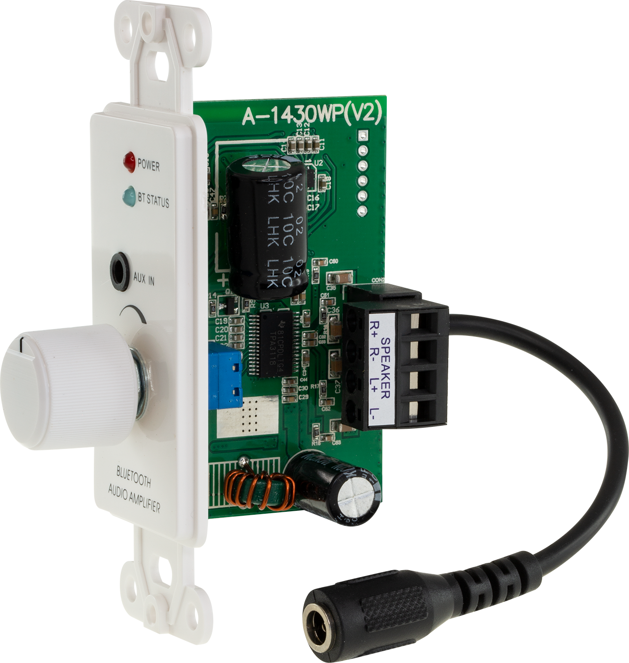 The PRO1351WP was our first wall plate featuring an in-built, high efficiency, 15W amplifier. As Sheldon Cooper said in the Big Bang Theory, ‘everything is better with Bluetooth’, so we added Bluetooth®. The Pro1430WP takes things up a notch by increasing power to 24W and utilising Bluetooth®4.2. This allows for password protection and a larger transmission range. This unit will easily power ceiling speakers like the Earthquake ACS3.0 or indoor/outdoor speakers like the Wintal Studio 5 speakers.