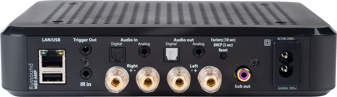 In addition to offering streaming audio from popular internet sources, the MBX-AMP also offers streaming of localUPnP™compliant audio. In addition, a built-in USB port allows users to connect an external flash drive or an externally-powered USB hard drive for use as additional music sources.