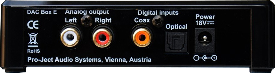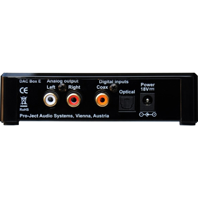 The entry-level Pro-Ject DAC Box E allows you to connect your digital sources like a TV or CD Player to an analogue amplifier input, utilising an internal Texas Instruments digital to analogue converter (also known as a DAC). Despite the low price, it sounds outstanding and supports HD music data up to 24/192kHz.The Pro-Ject DAC Box E uses high quality components. The entire audio circuits design is perfectly linear with an ultra-low output impedance. This means the unit is shielded and avoids any negative interference from external cables or pre amplifiers.