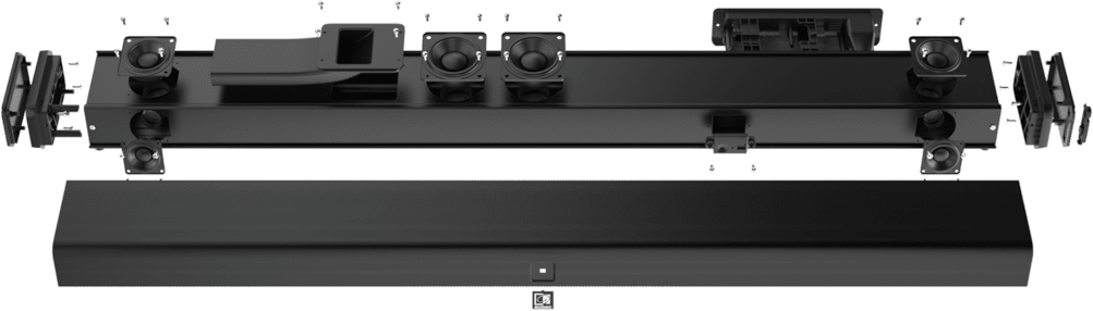 The acoustics originate from a 3-way speaker construction, composed of two 1.5” high frequency drivers, two 2" mid frequency drivers and a low frequency section with two 2.5” low frequency drivers with an RMS rating.