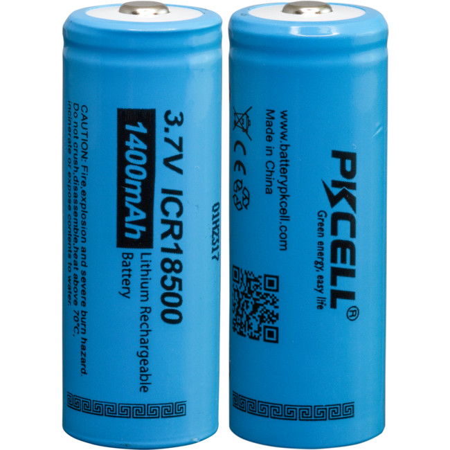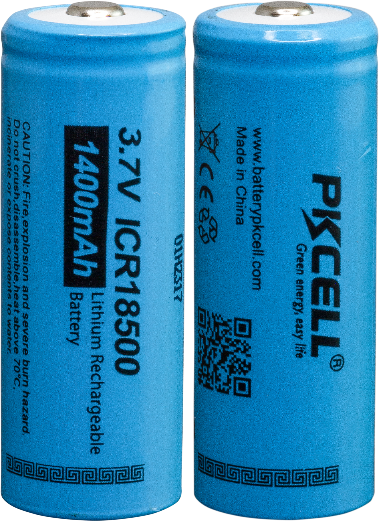 3.7V Lithium Ion Rechargeable Battery 18500 1400mAh Shrink Pack of 2