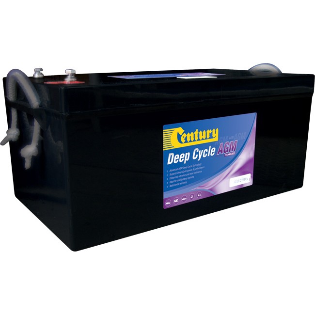 - The Century Deep Cycle AGM range utilises Absorbed Glass Mat (AGM) technology which absorbs the liquid electrolyte within highly porous glass fibre mat separators. This eliminates loose electrolyte whilst the sealed maintenance free design prevents acid leaks and the need for on-going maintenance. Extra strong grid designs, superior active paste material and robust internal components ensure lower self discharge, superior vibration resistance, longer cycle life and improved recharge capabilities.