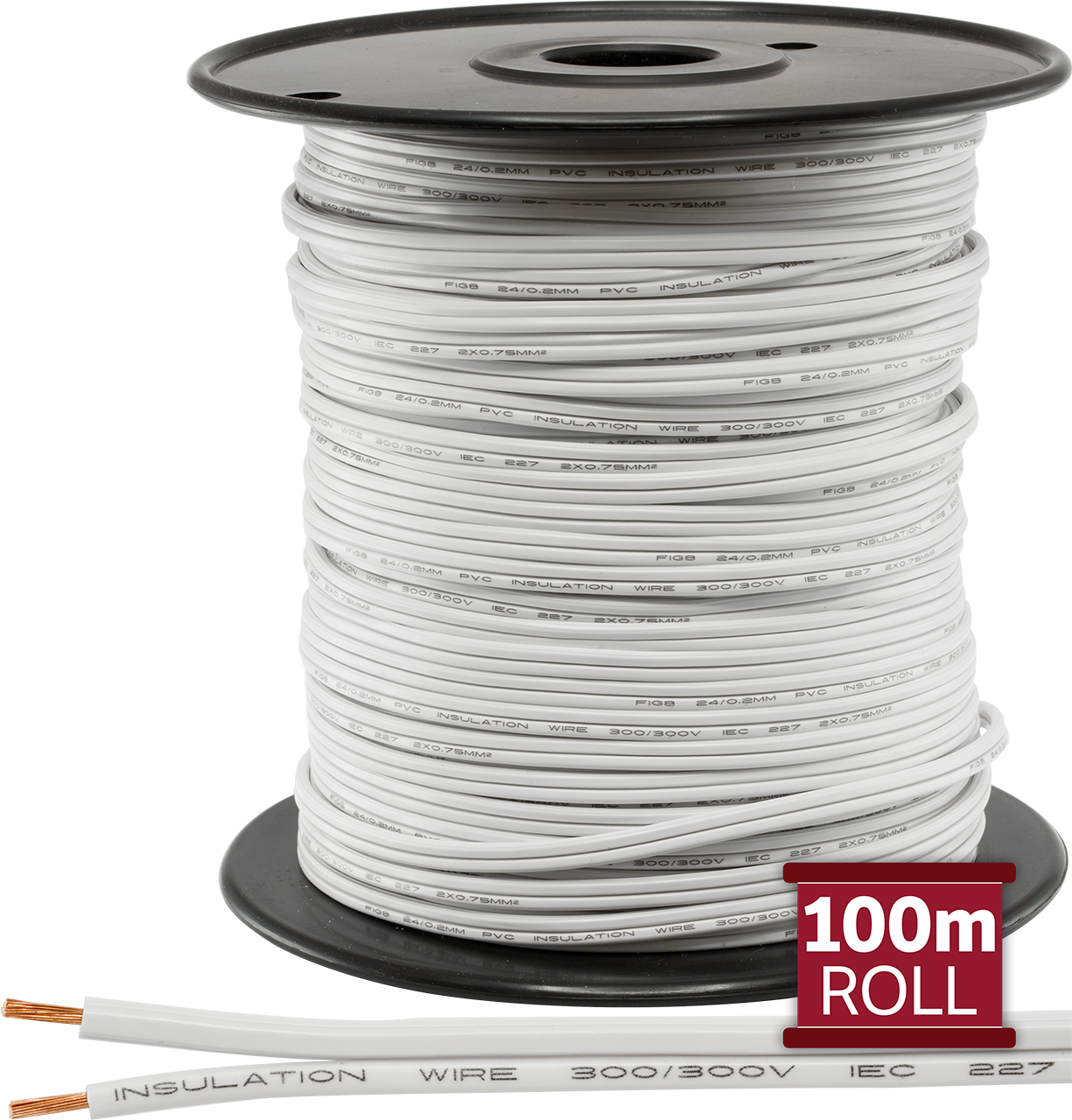 Figure-8 2 core power flex 2 core x 24 strand/0.2mm Insulation: PVC - V7 Colour: White