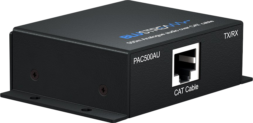 Blustreams PAC500AU Audio over CAT cable extender transmits analogue audio signals up to distance of 500m.