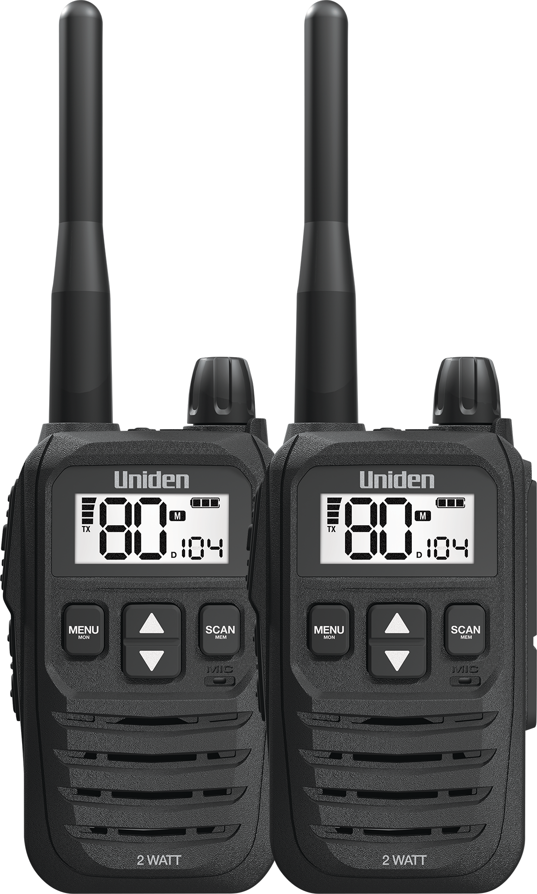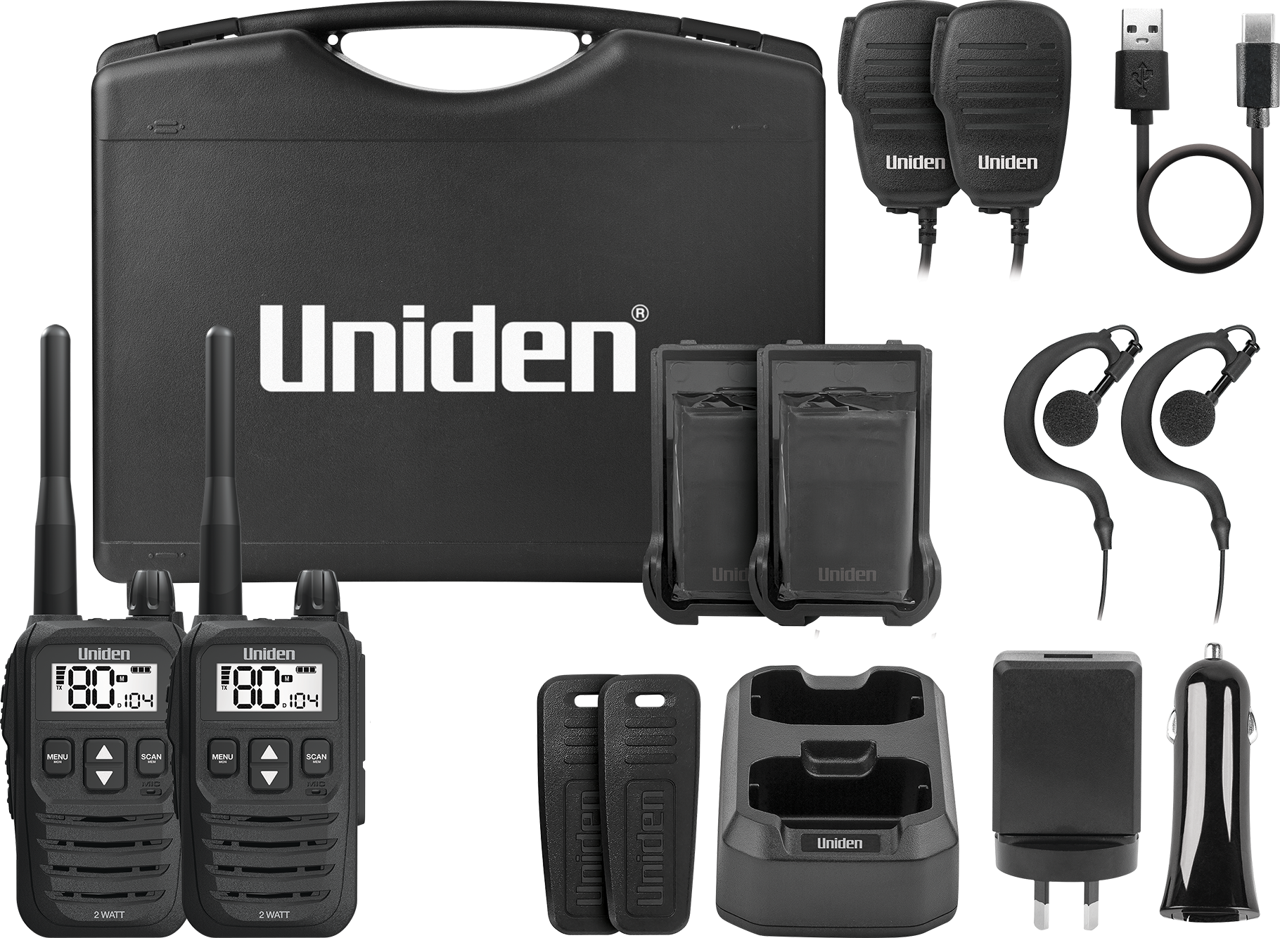 Presenting Uniden s latest in UHF technology. The UH825-2TP is a compact 80 Channel 2 Watt hand-held radio built for rugged Australian and New Zealand conditions making it ideal for Commercial Use, Hiking, Construction Sites and Restaurants. With the finest components, unique engineering and styling, the UH825-2TP offers outstanding performance adaptable in various conditions and situations. The UH825-2TP now comes in a Tradies Pack with all the accessories you need to keep connected.