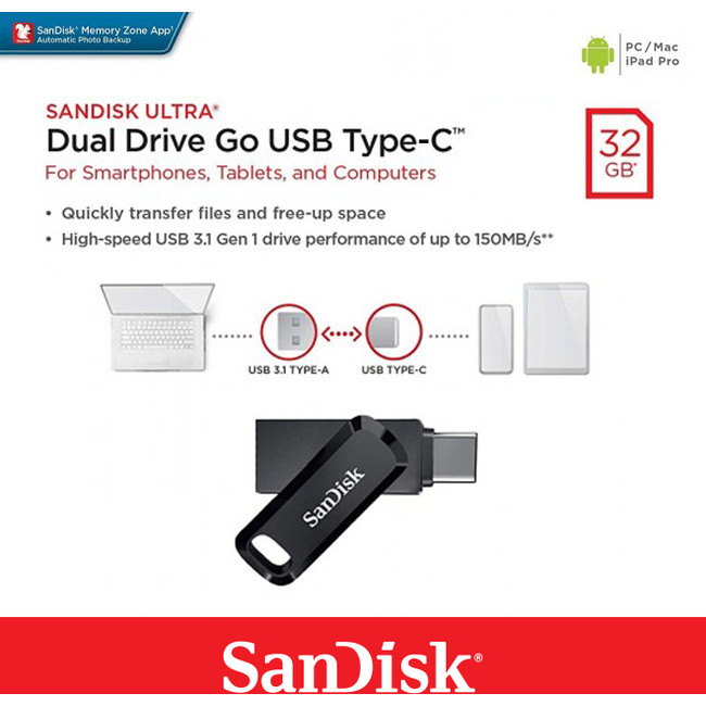 SDDDC3-032G SanDisk 32GB Ultra Dual Go USB 3.1 Type-C Flash Drive