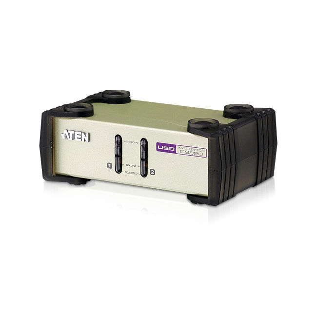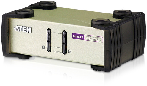 {tab DESCRIPTIONS} Aten CS-82U ? 2-Port PS/2-USB KVM Switch The CS82U PS/2-USB KVM Switch is a desktop control unit thatallows users to access two computers from a single KVM console (PS/2 or USB keyboard and mouse, and VGA monitor). In addition, CS82U comes with ATEN's new Video DynaSync technology, which eliminates boot-up display problems and optimizes resolution. Setup is fast and easy; simply plug cables into their appropriate ports. There is no software to configure, no installation routines, and no incompatibility problems. Since the CS82U intercepts keyboard input directly, it will work on multiple computing platforms. {tab FEATURES} One PS/2-USB VGA console controls two VGA interface computers. Dual Interface - supports computers with PS/2 or USB keyboards and mice Computer selection via front panel pushbuttons, hotkeys, andmouse Multiplatform support - Windows, Linux, Mac, and Sun Superior video quality - 2048 x 1536; DDC2B Video DynaSync? - Exclusive ATEN technology eliminates bootup display problems and optimizes resolution when switching between ports Console mouse port emulation/bypass feature supports most mouse drivers and multifunction mice Complete keyboard emulation for error-free booting Mac/Sun keyboard support and emulation* Multilingual keyboard mapping - supports English, Japanese, and French keyboards Gaming keyboard support Auto Scan Mode for monitoring all computers Firmware upgradable Non-powered * 1. PC keyboard combinations emulate Mac/Sun keyboards * 2. Mac/Sun keyboard work only with their own computers {tab SPECIFICATIONS} Computer Connections 2 Port Selection Front Panel Pushbuttons; Hotkey, USB Mouse Connectors Console Ports Keyboard 1 x USB Type A Female (Black), 1 x 6-pin Mini-DIN Female (Purple) Video 1 x HDB-15 Female (Blue) Mouse 1 x USB Type A Female (Black), 1 x 6-pin Mini-DIN Female (Green) KVM Ports 2 x SPHD-18 Female (Yellow) Power 1 x DC Jack Switches Selected 2 x Pushbutton LEDs On Line 2 (Orange) Selected 2 (Green) Emulation Keyboard/Mouse PS/2, USB Video 2048 x 1536 @ 60 Hz; DDC2B Scan Interval 3, 5, 10, 20 secs. (5 secs. default) Power Consumption DC 5V, 1.1W Environment Operating Temp. 0 - 50 °C Storage Temp. -20 - 60 °C Humidity 0-80% RH, Non-condensing Physical Properties Housing Metal Weight 0.54 kg Dimensions ( L x W x H ) 14.00 x 8.70 x 5.50 cm Package Contents 1 x CS82U PS/2-USB KVM Switch 2 x Custom KVM Cable sets 1 x User Instructions Compatible Cables 2L-5201U, 2L-5202U, 2L-5203U, 2L-5205U, 2L-5301UP, 2L-5302UP, 2L-5303UP