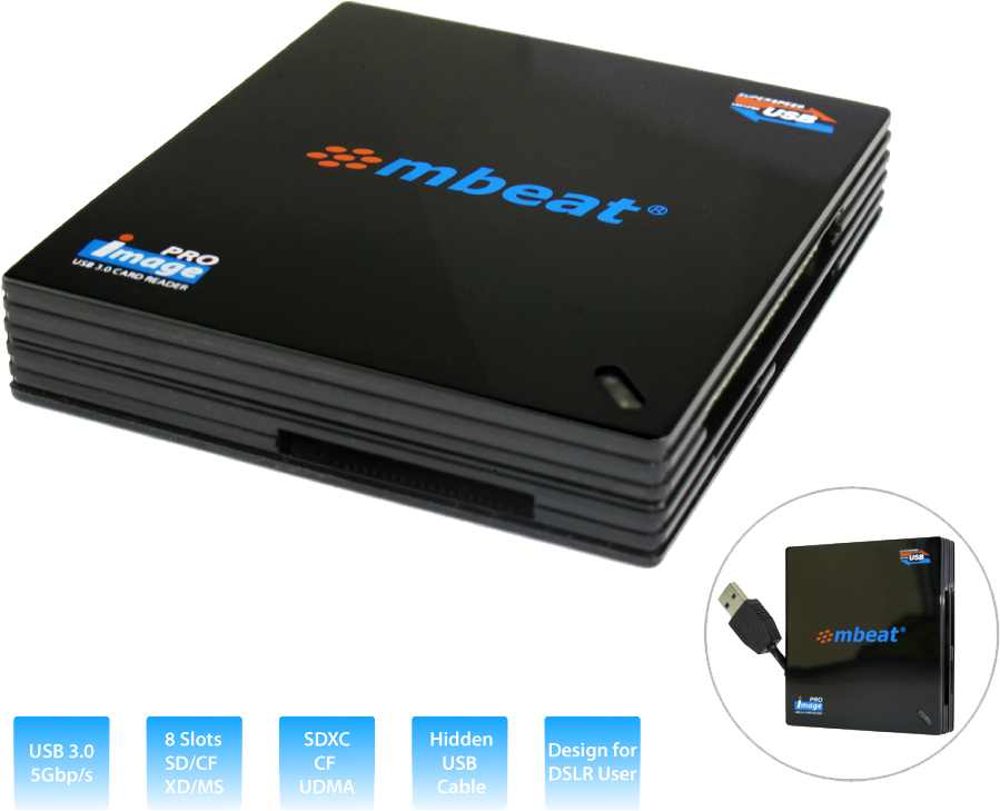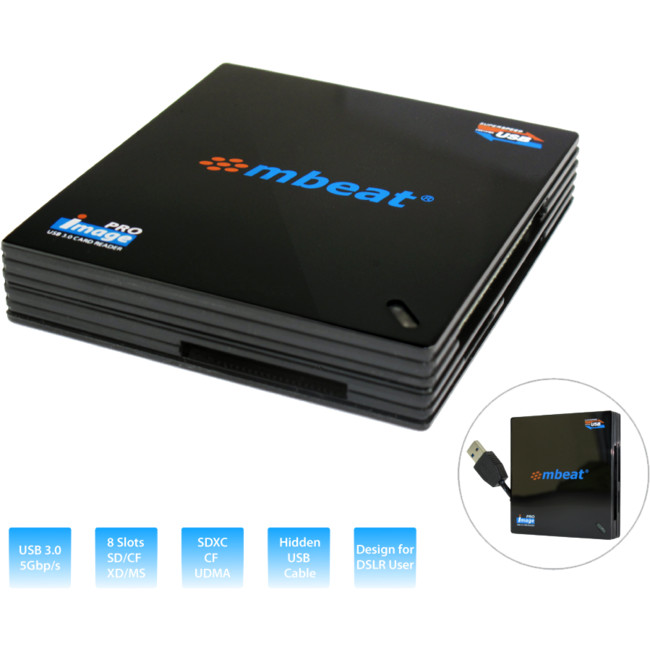 It comes with 8 card slots to take SD, CF, XD andMS cards. It supports high capacity SDXC memory card up to 2TB and CF card UDMA mode. The unit is compact and sleek, making it great for day -to -day use. The hidden USB data cable design also means that a separated USB cable is no longer needed.