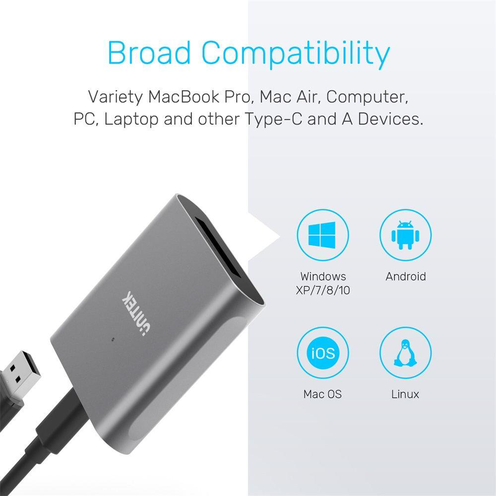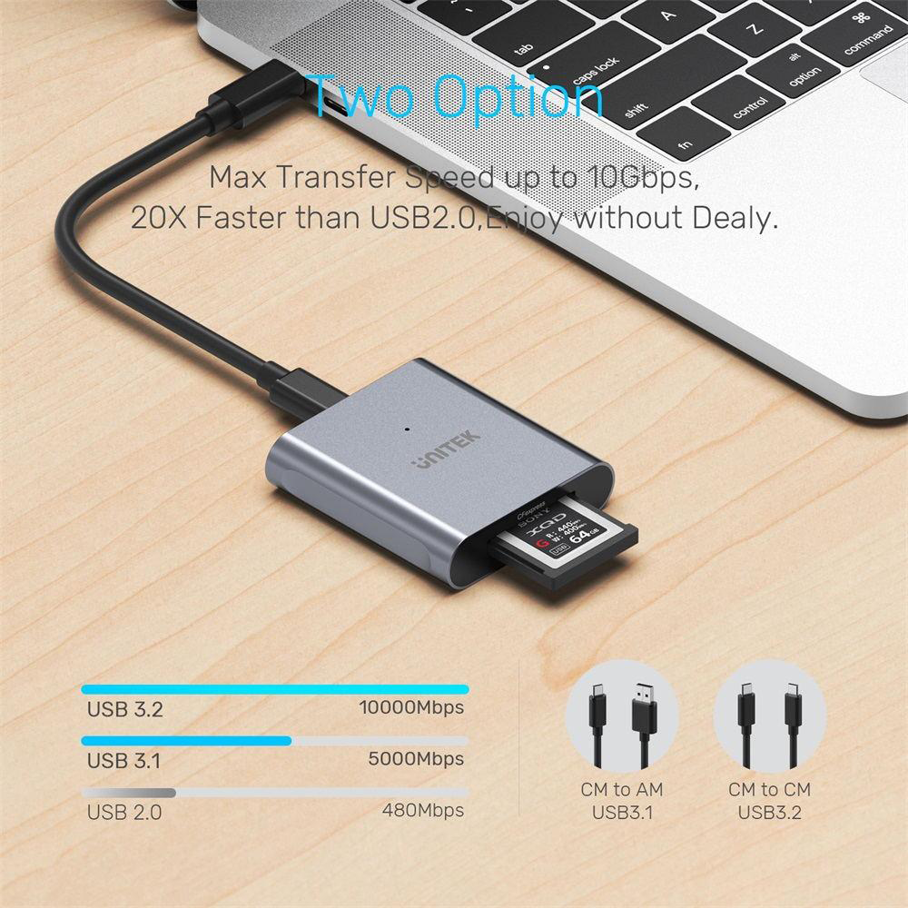 The USB CFexpress Card Reader supports super faster data transfer up to 10Gbps through USB 3.2 interface -20X faster than USB 2.0, transfer HD movies, or files in just seconds.