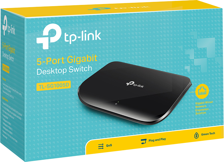 The TL-SG1005D 5-port Gigabit Ethernet Switch provides you with a high-performance, low-cost, easy-to-use, seamless and standard upgrade to improve old network to 1000Mbps network. Increase the speed of your network server and backbone connections, or make Gigabit to the desktop a reality. Power users in the home, office, workgroup, or creative production environment can now move large, bandwidth-intensive files faster. Transfer graphics, CGI, CAD, or multimedia files and other applications that have to move large files across the network almost instantly.