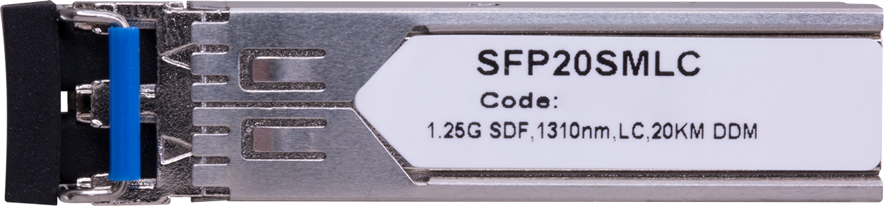 The SFP transceivers are high performance, cost effective modules supporting dual data-rate of 1.25Gbps and 20km transmission distance with SMF. The transceiver consists of three sections: a FP laser transmitter, a PIN photodiode integrated with a trans-impedance preamplifier (TIA) and MCU control unit. All modules satisfy class I laser safety requirements.