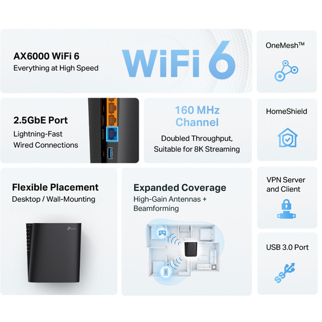 Wi-Fi Speeds | AX6000- 5 GHz: 4804 Mbps (802.11ax, HE160)