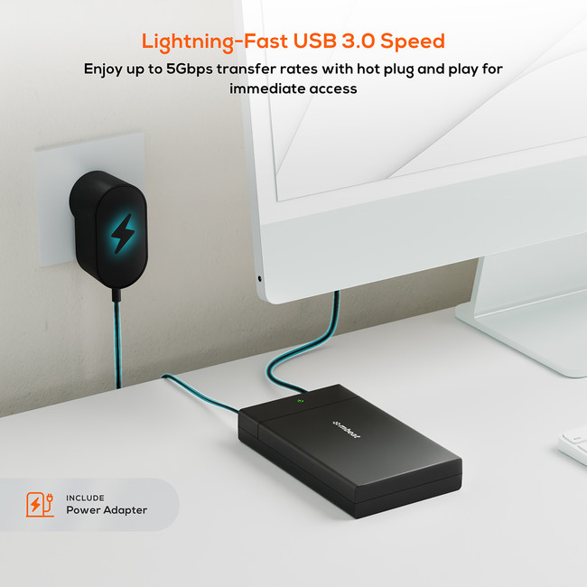 • Reliable Performance: Includes a power adapter for stable HDD operation, ensuring data integrity and longevity.