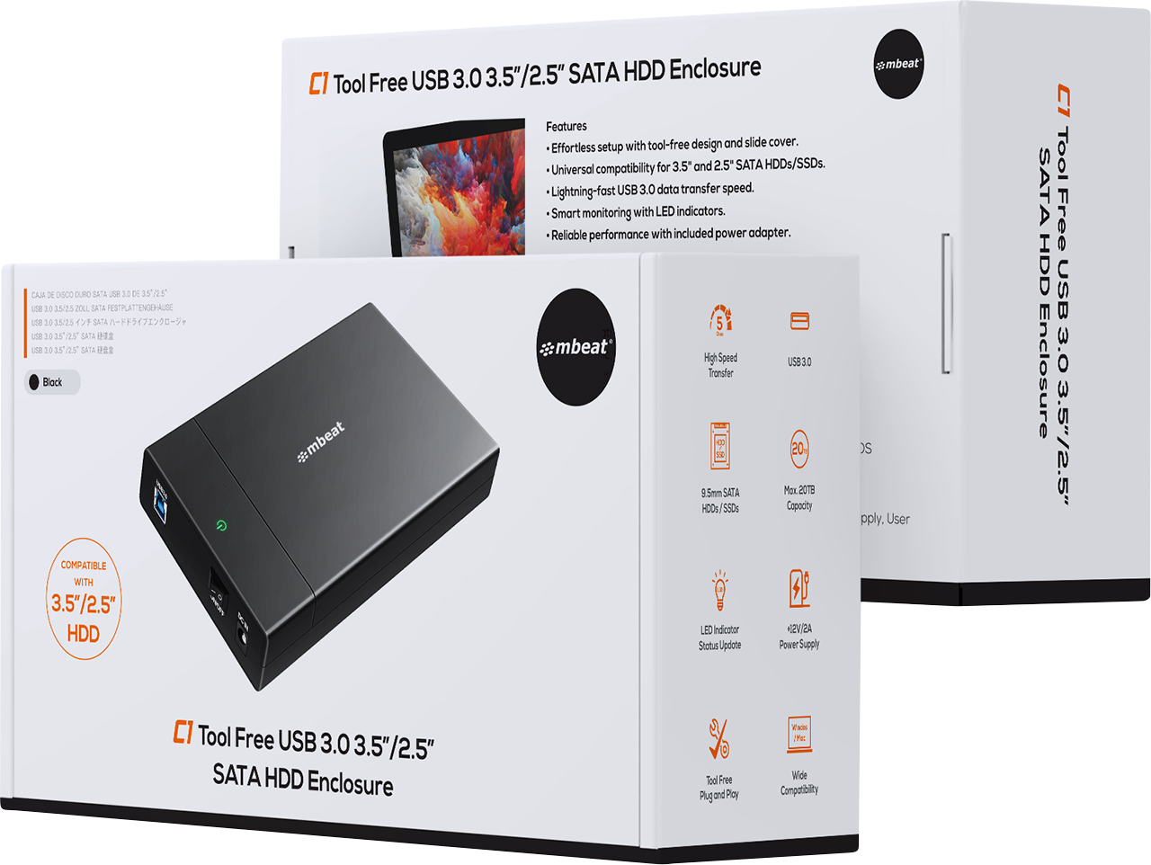 mbeat C1 Tool Free USB 3.0 3.5″/2.5″ SATA HDD Enclosure