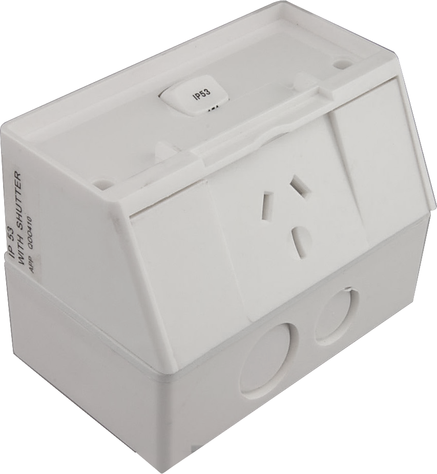 The Transco Neptune Russell is a compact, tough IP53 single pole powerpoint, designed for tight spaces, ideal behind thehot water system, under eves, carports, BBQ nooks etc. The hard mat finish means many years of reliable service under the harshest conditions.
