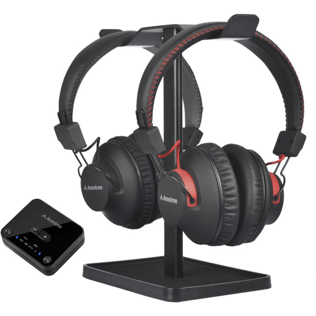 Connect the transmitter to your TV and listen through both headphones simultaneously, each with built-in volume controls so you can listen at your preferred volumes.