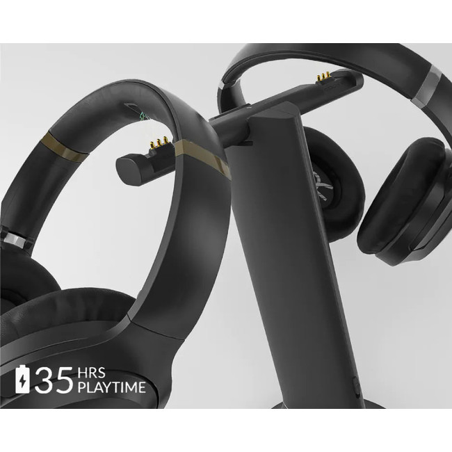 Each headphone in the Duet set can run up to 35 hours perfull charge – more than enough for a full day of binge-watching. When the battery is low, the transmitter base doubles as a charging dock; simply place the headphonesonto the charging dock, they’ll start charging and be ready again within 1.5 hours.