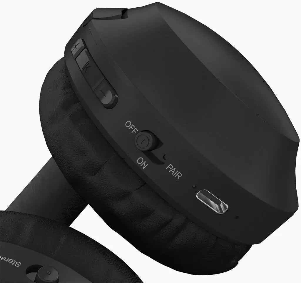 Turn on the headphones. Slide and hold the Power Switch to "pair" until the LED indicator starts flashing Blue and Red, then release the switch backto "ON".