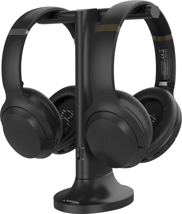The Avantree Duet is a Two-Headphone-One-Transmitter RF 2.4Ghz wireless headphone set for comfortably watching TV inquietness with a partner. Enjoy perfectly in-sync visual andaudio while your family enjoys the TV with you through the external TV speakers. Easy charging with the transmitter charging dock 2-in-1. Features “Clear Dialogue Mode” and "Balanced sound mode", perfect forhearing the conversation.