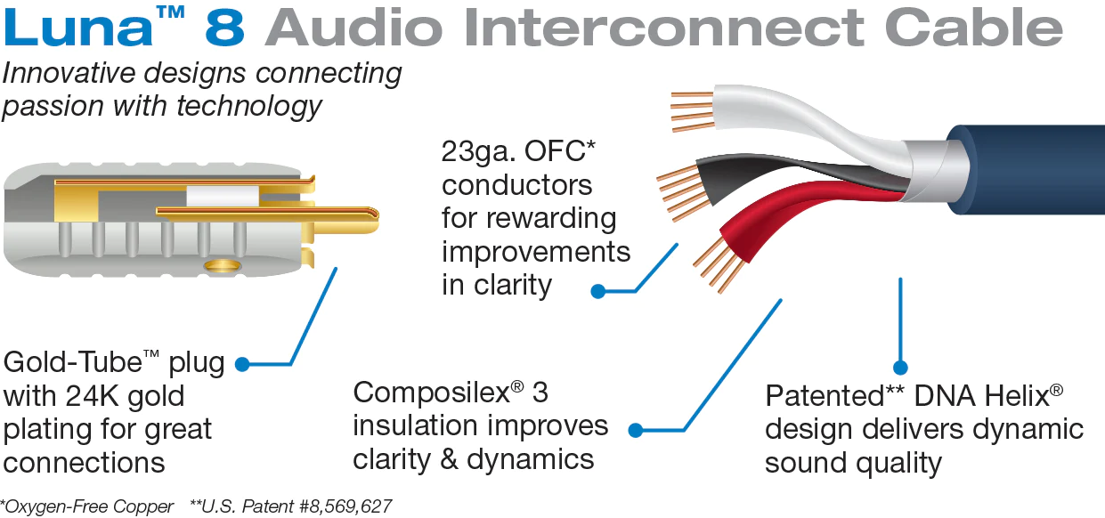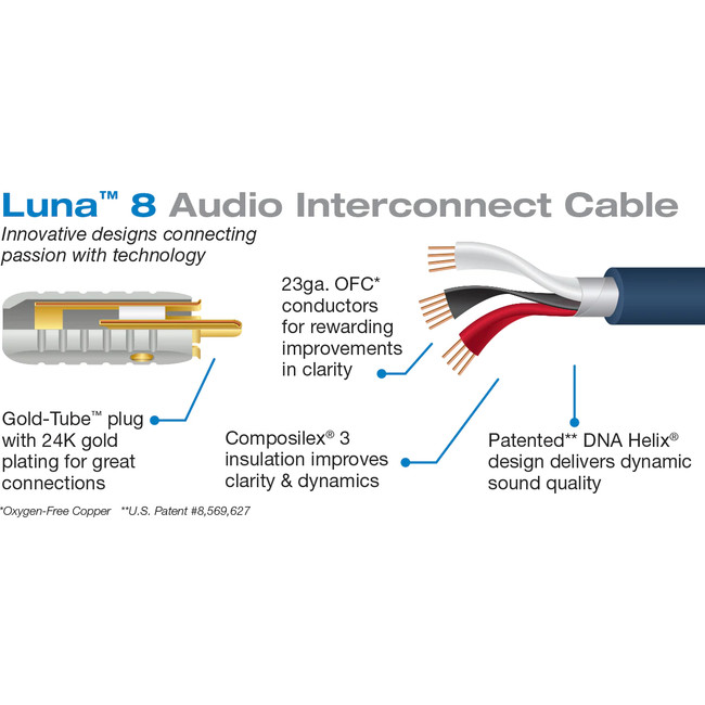 With Oxygen-Free Copper conductors in Wireworld’s new Tri DNA HELIX cable design, Luna 8 high-end subwoofer cable provides superior impact and expressive dynamics, while the proprietary COMPOSILEX 3 insulation of this 23 gauge wire improves focus and clarity.