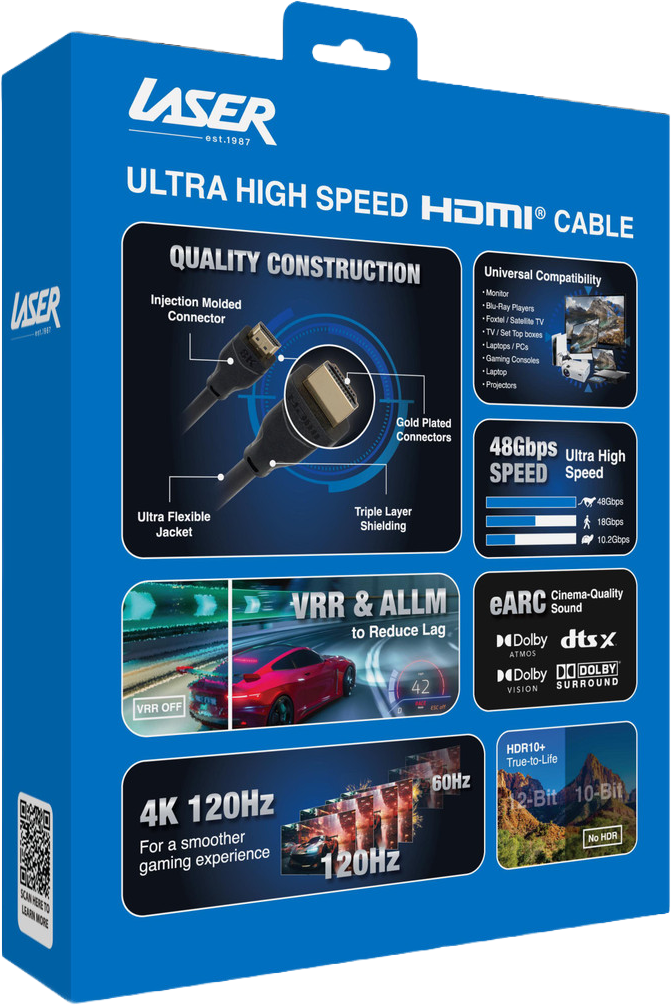 Unlock next-gen visuals and audio with theLaser Ultra High Speed HDMI 2.1 Cable, a must-have for cutting-edge home entertainment, gaming, and professional AV setups.