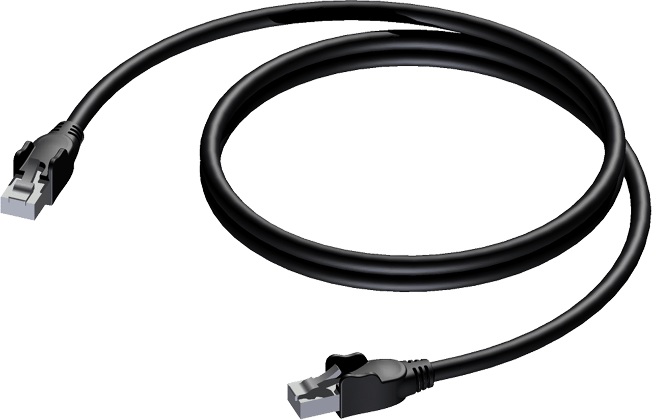Both ends are terminated by male RJ45 connectors with gold plated contacts.