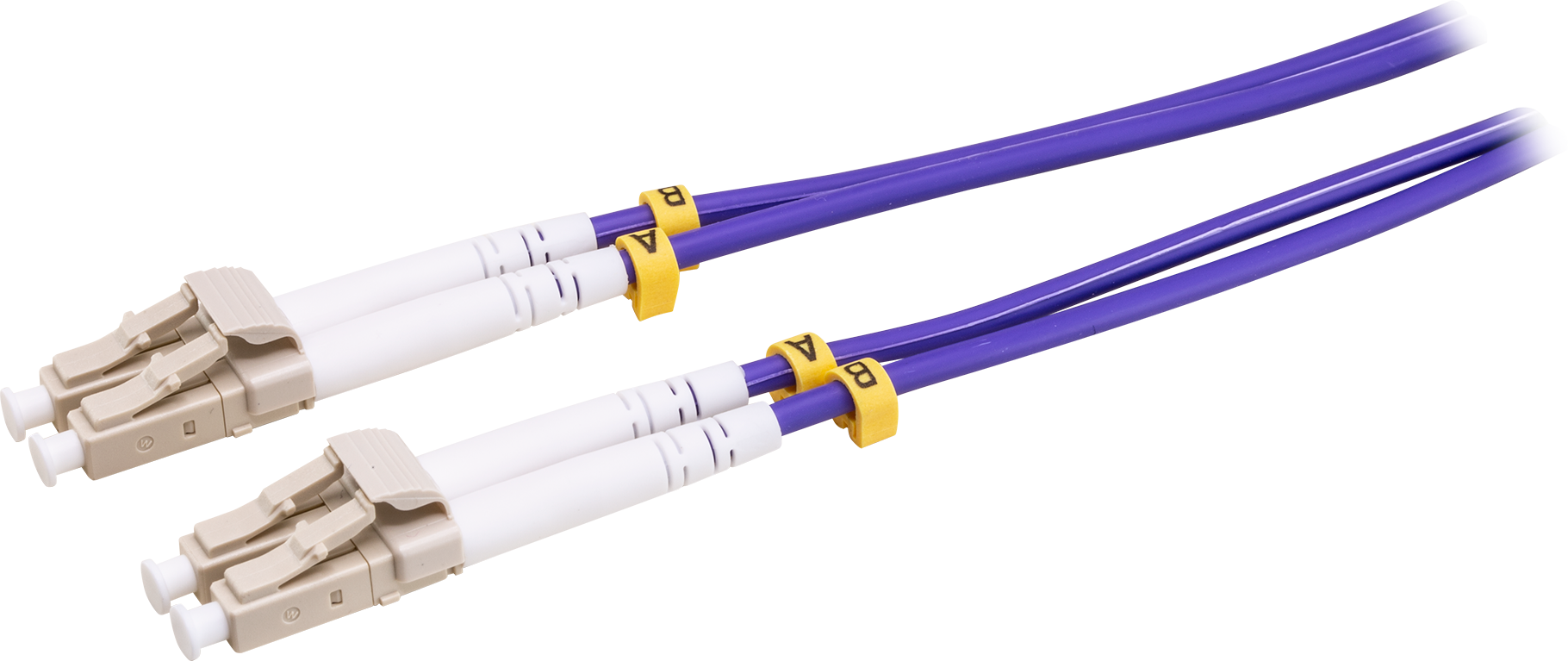 OM4 Laser-Optimized Multimode Fiber (LOMMF) "Aqua" cables, is used for 10/100Gb Ethernet applications. These new technology, 50/125um, LC/LC OM4 Fiber Optic Patch Cord, provide nearly three times the bandwidth over conventional 62.5um multimode fiber, with performance rivaling that of Singlemode cable, at a much reduced cost. LOMMF cable allows 10/100Gb serial transmission over extended distances in the 850nm wavelength window, where low-cost Vertical Cavity Surface Emitting Lasers (VCSELs) enable a cost-effective, high-bandwidth solution. LOMMF is ideally suited for LAN's, SAN's, and high-speed parallel interconnects for head-ends, central offices, and data centers.