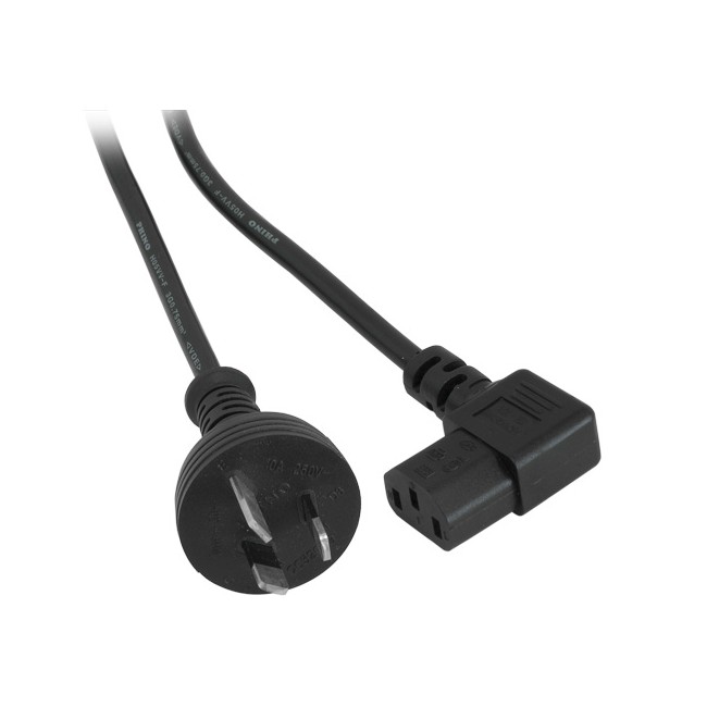 10 Amp AC power cord as used on most computers and officeequipment. Fitted with right angle IEC-C13 connector and Australian 3-pin mains plug with insulated pins.