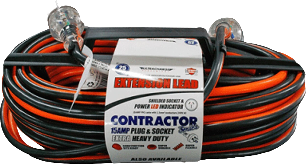 Super drable and flexible 15A extension lead, construction site ready