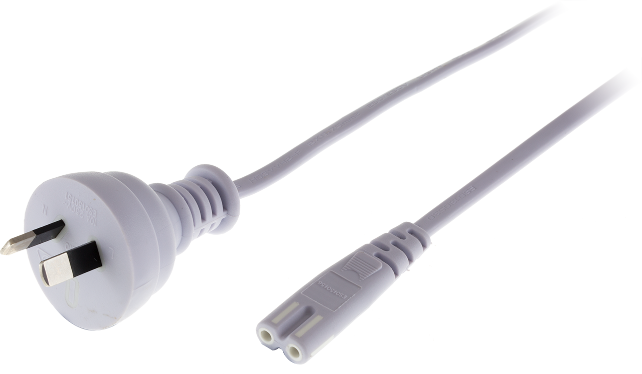 • Fitted with an IEC C7 / Figure 8 connector and Australian 2-pin mains plug with insulated pins compliant with AS/NZS3112.