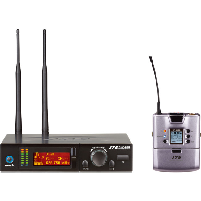 UF-20S receiver with UF-20TB belt-pack transmitter and CM-501 lapel mic 624-694MHz