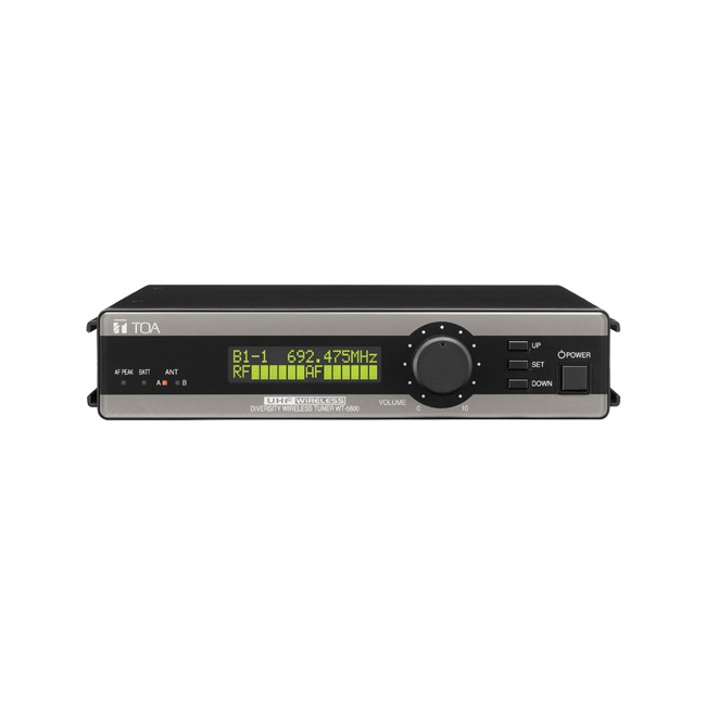 The wireless tuner WT-5800 is a PLL-synthesizer controlled double superheterodyne true diversity tuner to beused in UHF wireless systems.