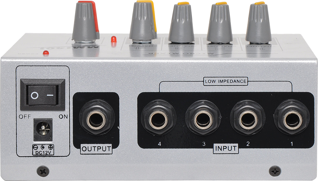 This compact mono mixer allows 4 channels of audio to be mixed via 6.35mm unbalanced connections. It features 4 x 6.35mm unbalanced inputs, 1 x 6.35mm balanced master output, master volume control and handy battery or plugpack operation.