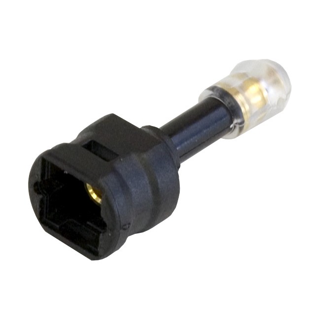 Adapts a Toslink Optical SPDIF cable to connect to a Mini TOSLINK optical socket.