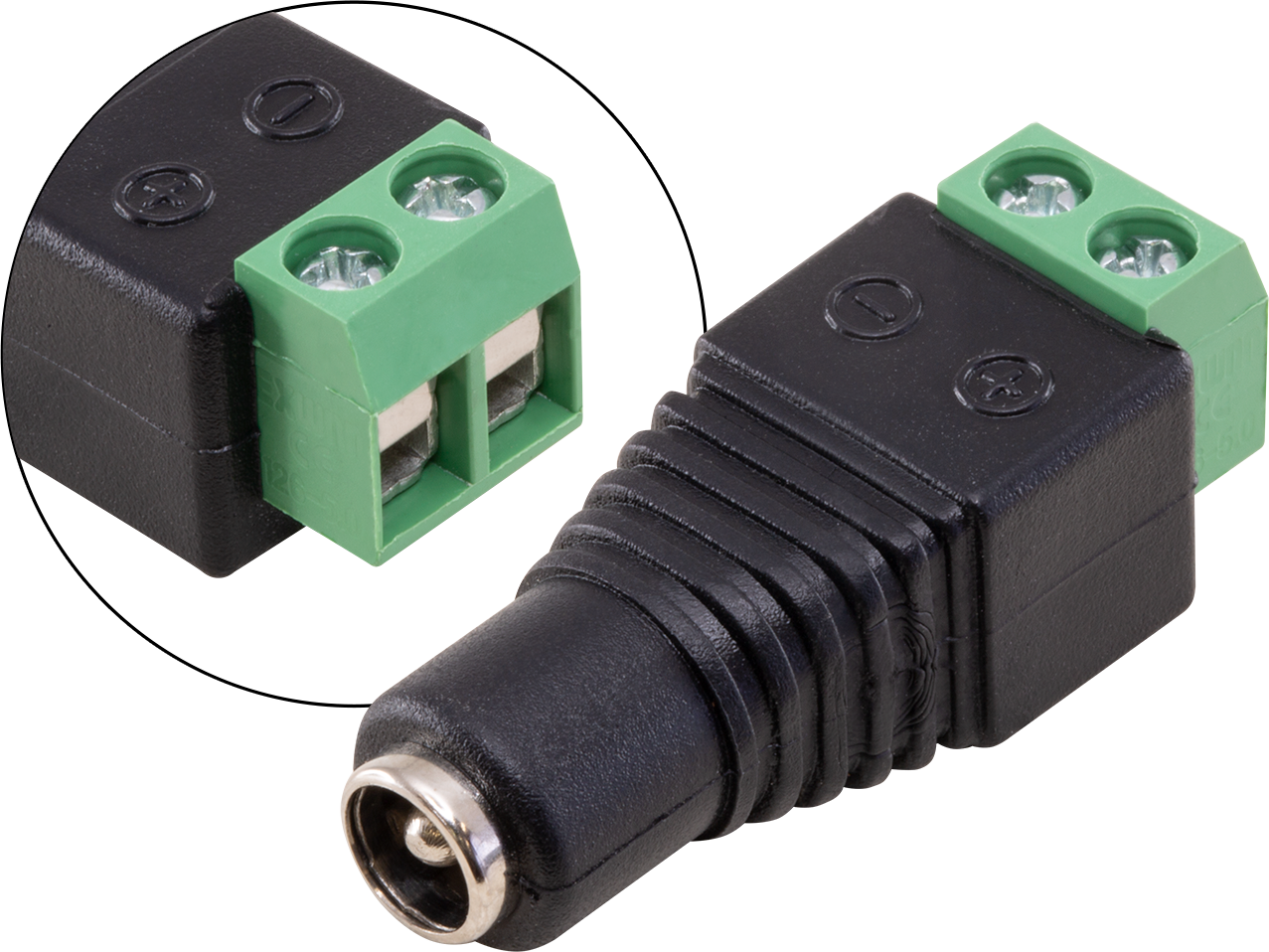 2.5mm inline DC Plug to screw termination. Terminals made from non-recycled materials for longer life