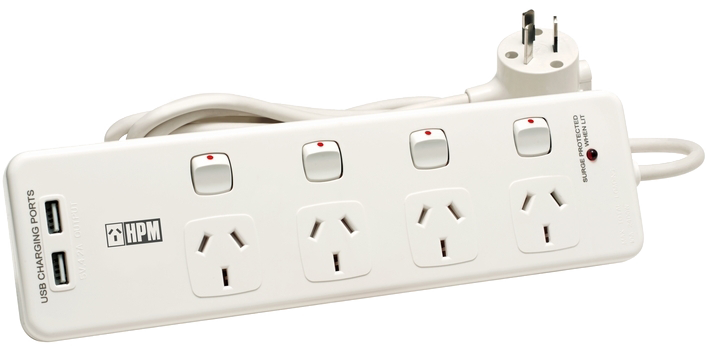 The HPM 10amp 4 outlet surge protected power board is individually switched and has a 1.8m lead.