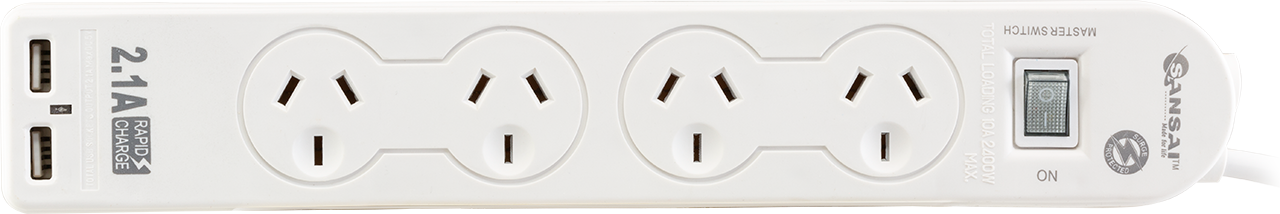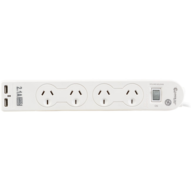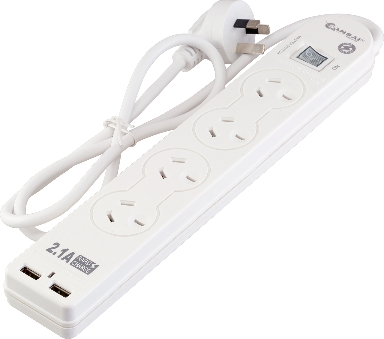 Includes 2 x USB outlets for charging and powering your USB devices without a PC! Features handy right-angle plug, 1m power cord and the strip design can fit neatly behind furniture and office equipment.